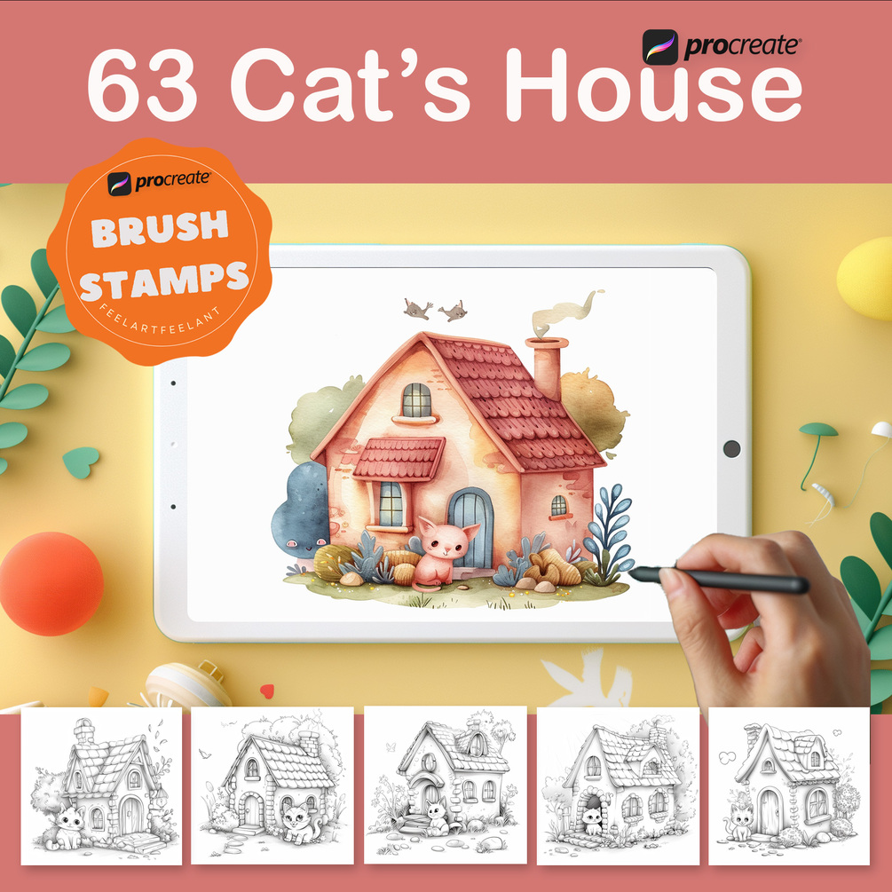 Available now for instant download on Etsy, bring the enchanting world of cat homes to your digital canvas with our 63 Cat's House Procreate Brush Stamps. Unleash your creativity and create a magical realm that tells a story with every detail!